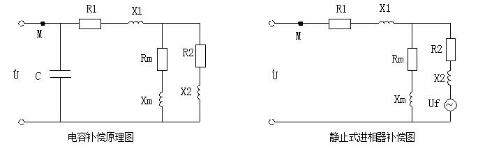 電容補(bǔ)償和進(jìn)相器補(bǔ)償?shù)脑韴D分別如下: